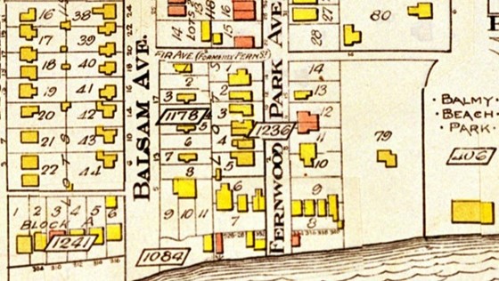 The result was not Wilson’s vision of dispersed villas occupied by well dressed seasonal residents and their servants but, by 1914 if not earlier, a dense urban neighbourhood of modest homes occupied year-round by practically dressed residents who washed their own dishes and clothes. One need only look at Fernwood Park Avenue, where after 1900 the landowner carved out over a dozen small building lots along the boundary between Lots 116, 117, 118 and Lot 79 – visible to this day – to see this strategy manifest.
